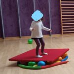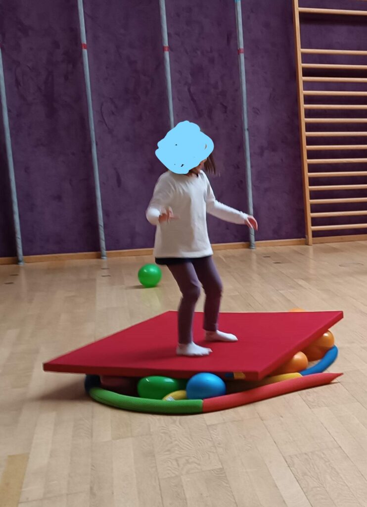 Gleichgewicht halten auf einer beweglichen Matte